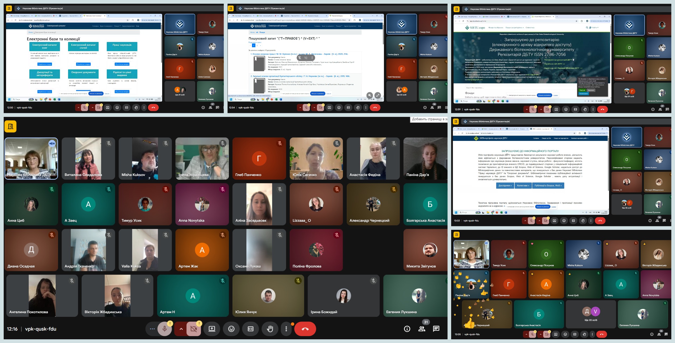 24 вересня 2025 року, у межах інформаційного тижня першокурсника, Наукова бібліотека провела онлайн-лекцію для здобувачів вищої освіти 1 курсу факультету менеджменту, адміністрування та права, яка включала теоретичну частину: знайомство з сайтом, правилами користування, графіком роботи книгозбірні, а також і практичну частину. Студенти самостійно спробували алгоритм пошуку документів в електронному каталозі, репозитарії ДБТУ, вебпортфоліо науковців тощо. Студенти під час заходу мали змогу успішно пройти онлайн-реєстрацію і стати повноцінними користувачами Наукової бібліотеки. Присутніх на заході було 41 особа.