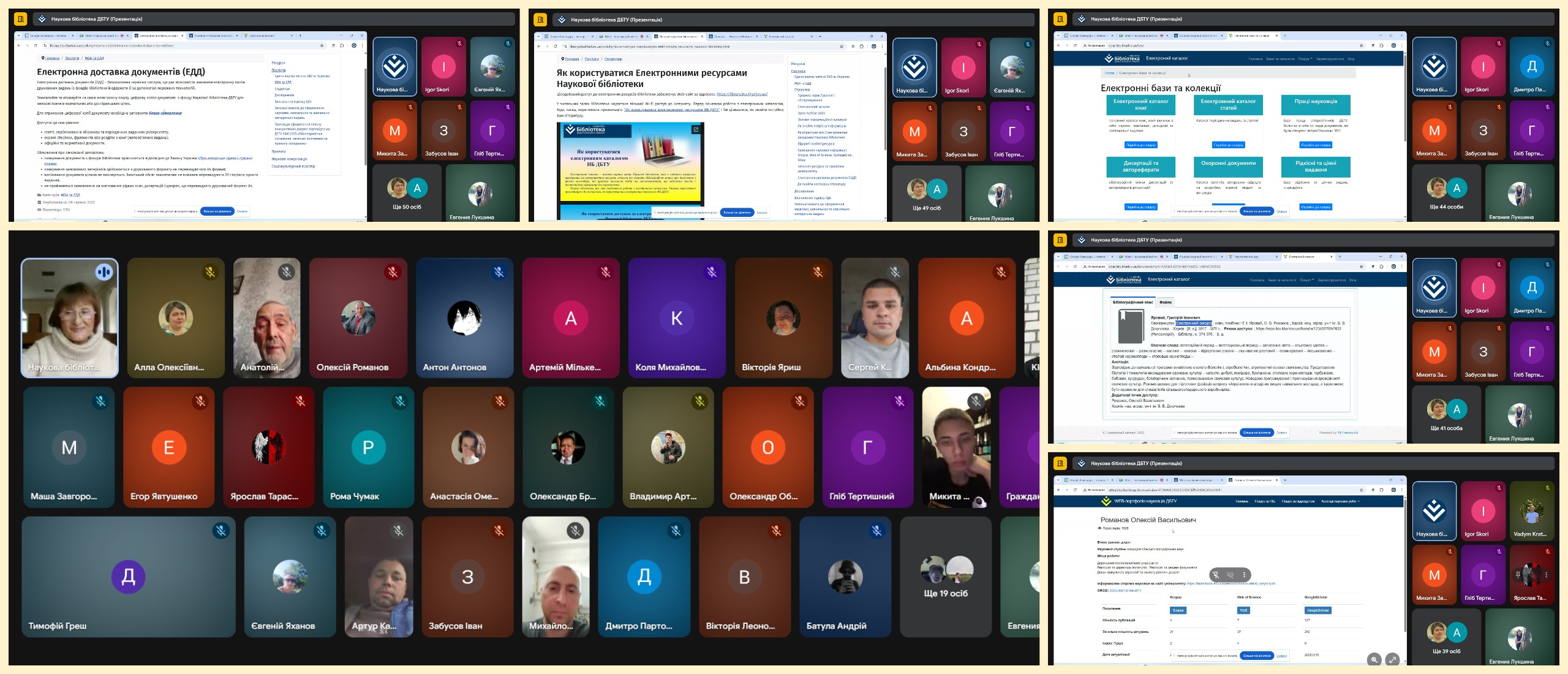 Першочергове завдання онлайн-зустрічі ‒ навчити нових читачів спілкуванню з університетською книгозбірнею дистанційно. На заході було присутніх 58 осіб.